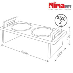 ظرف دوقلوی پایه دار آب و غذای سگ و گربه نیناپت مدل پانزی سایز 4