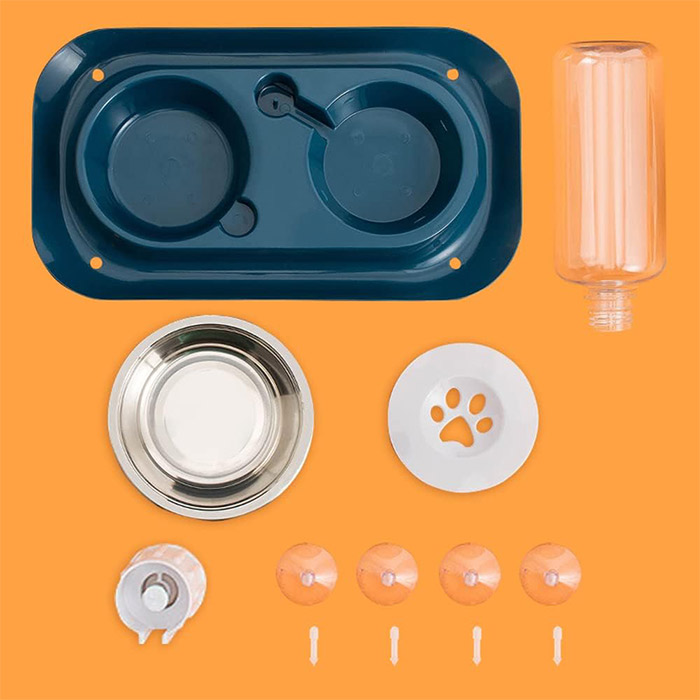 ظرف آب و غذای دوقلو بطری دار سگ و گربه مدل پنجه