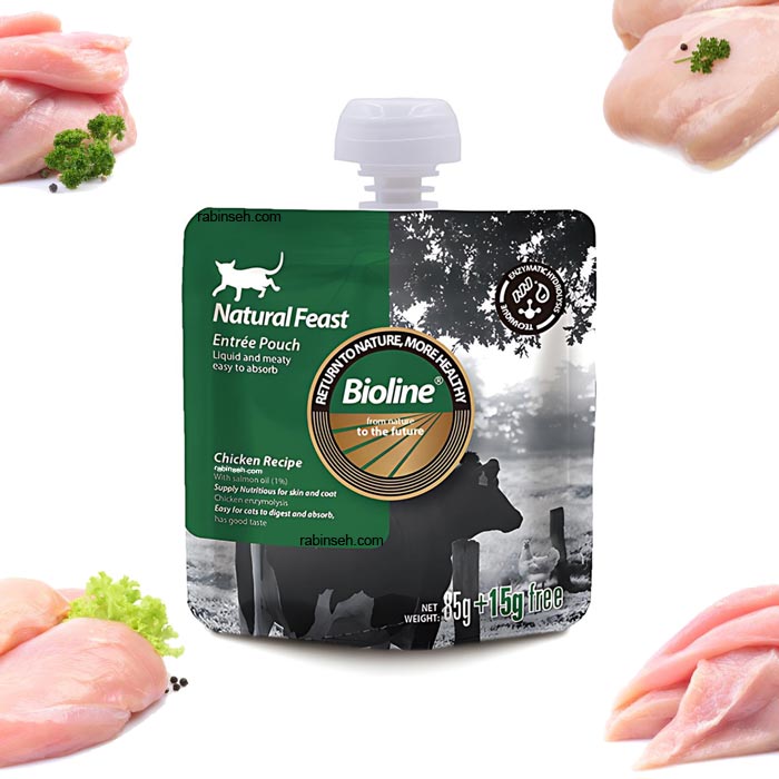 Bioline pudding dry cat food chicken 100gنظرات مشتریان