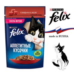 پوچ گربه فلیکس پورینا طعم گوشت گوساله در ژله 75 گرم - روسیه