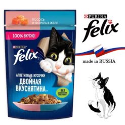پوچ گربه فلیکس پورینا طعم میکس ماهی تن و سالمون در ژله 75 گرم - روسیه