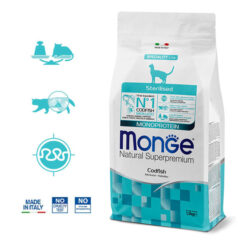 monge dry food cat strilised codfish 1.5kgنظرات مشتریان
