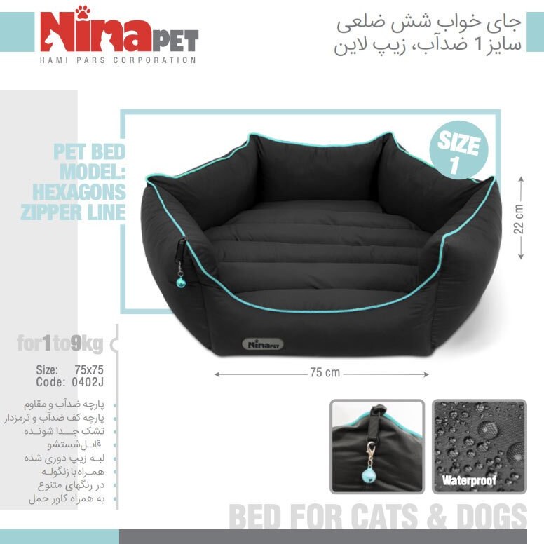 جای خواب سگ و گربه نیناپت مدل شش ضلعی زیپ لاین سایز 1 (مناسب وزن 1 تا 9 کیلوگرم)