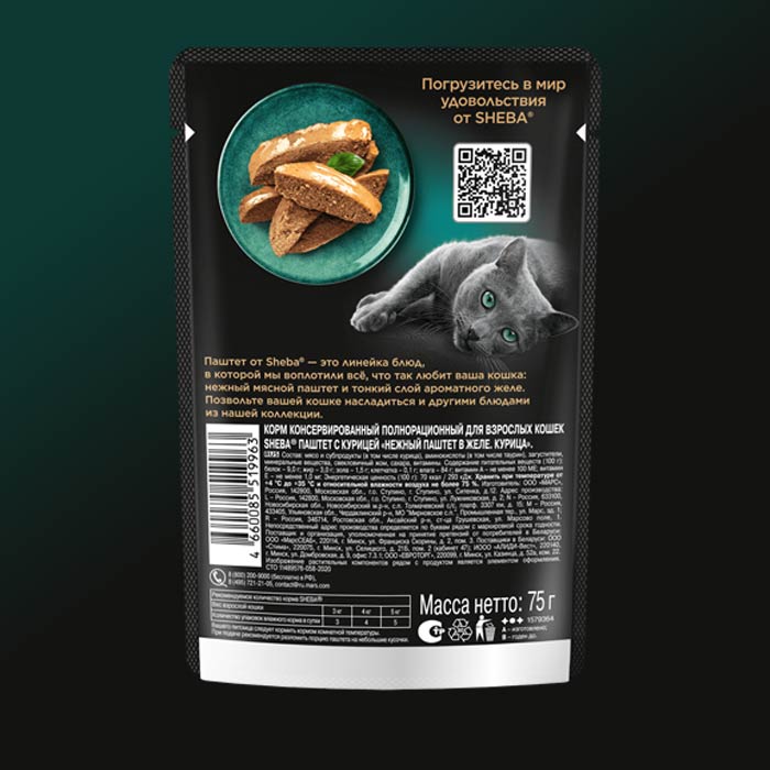 پوچ گربه شبا طعم مرغ پته ای 75 گرم - روسیه