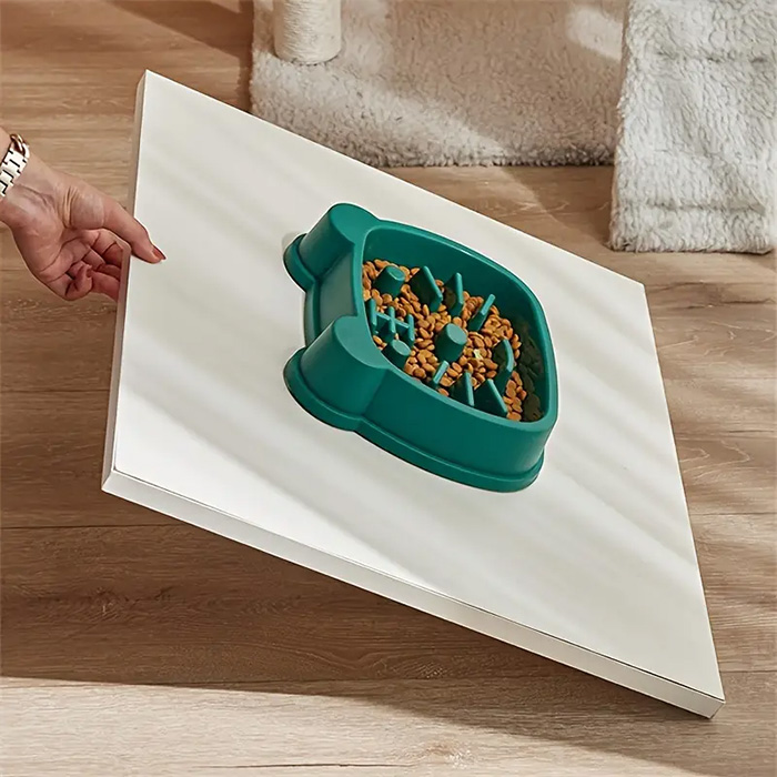 ظرف غذای آرامخور سگ و گربه با ایجاد موانع و پیچیدگی در مسیر غذا، حیوان را مجبور میکند تا برای رسیدن به غذا تلاش بیشتری کند. این امر باعث میشود که غذا خوردن به یک فعالیت لذتبخش و زمانبر تبدیل شود و از پرخوری و بلعیدن سریع غذا جلوگیری کند.